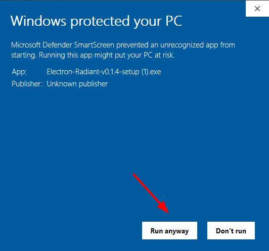 - WIN INSTALL: Electron-Radiant-v0.x.x-setup.exe