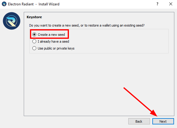 Radiant hanya berfungsi dengan dompet standar, yaitu yang dapat dihubungi. Untuk mengambil kunci pribadi tertentu, itu akan menjadi opsi 3