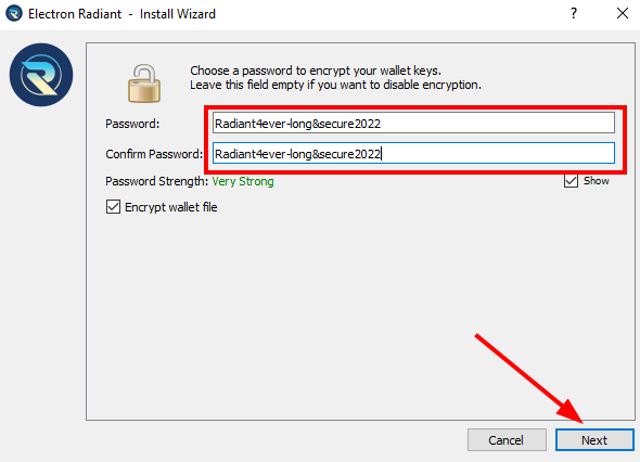 Dan langkah terakhir adalah membuat kata sandi yang mengenkripsi dompet.
