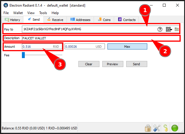 3. Receive | Address to receive coins and it will always be an unused one. |
