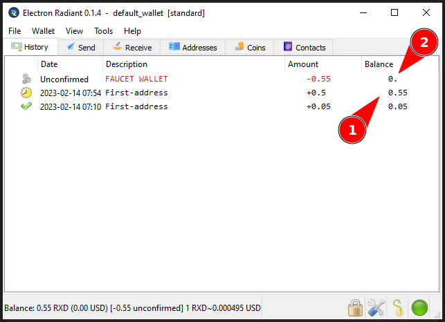 Dompet Elektron direkomendasikan untuk penggunaan penerimaan dan pengiriman secara umum. Ini menggunakan Electrumx untuk terhubung ke node Radiant.
