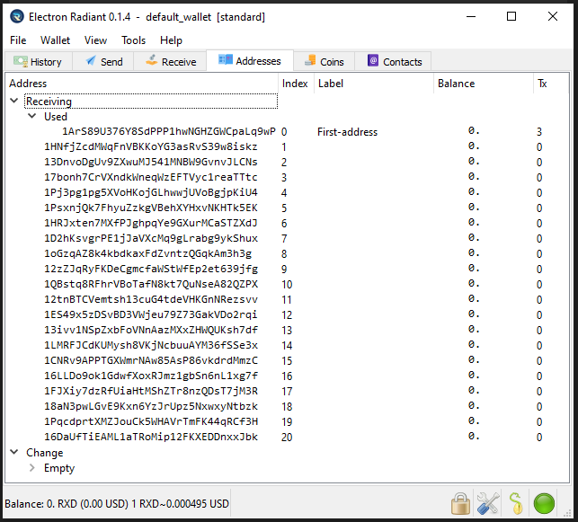20 alamat pertama dompet dan jumlah koin di masing-masingnya. Dalam perubahan